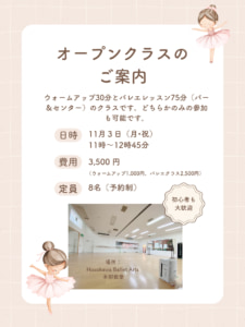 11月よりバレエオープンクラスを始めます。